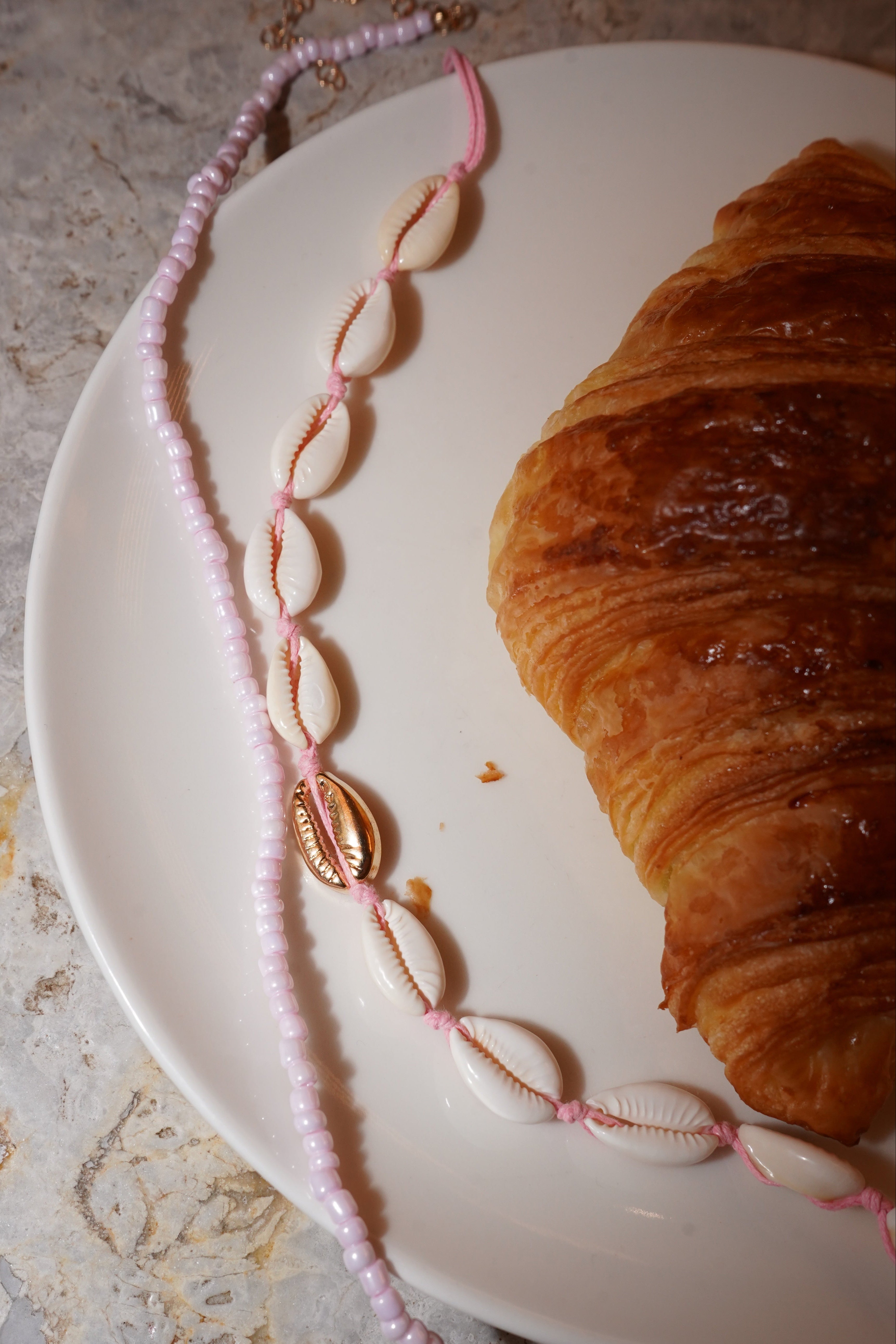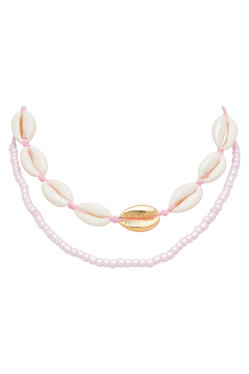 Strandkette für Damen - sommerliche Muschelkette mit rosa Details